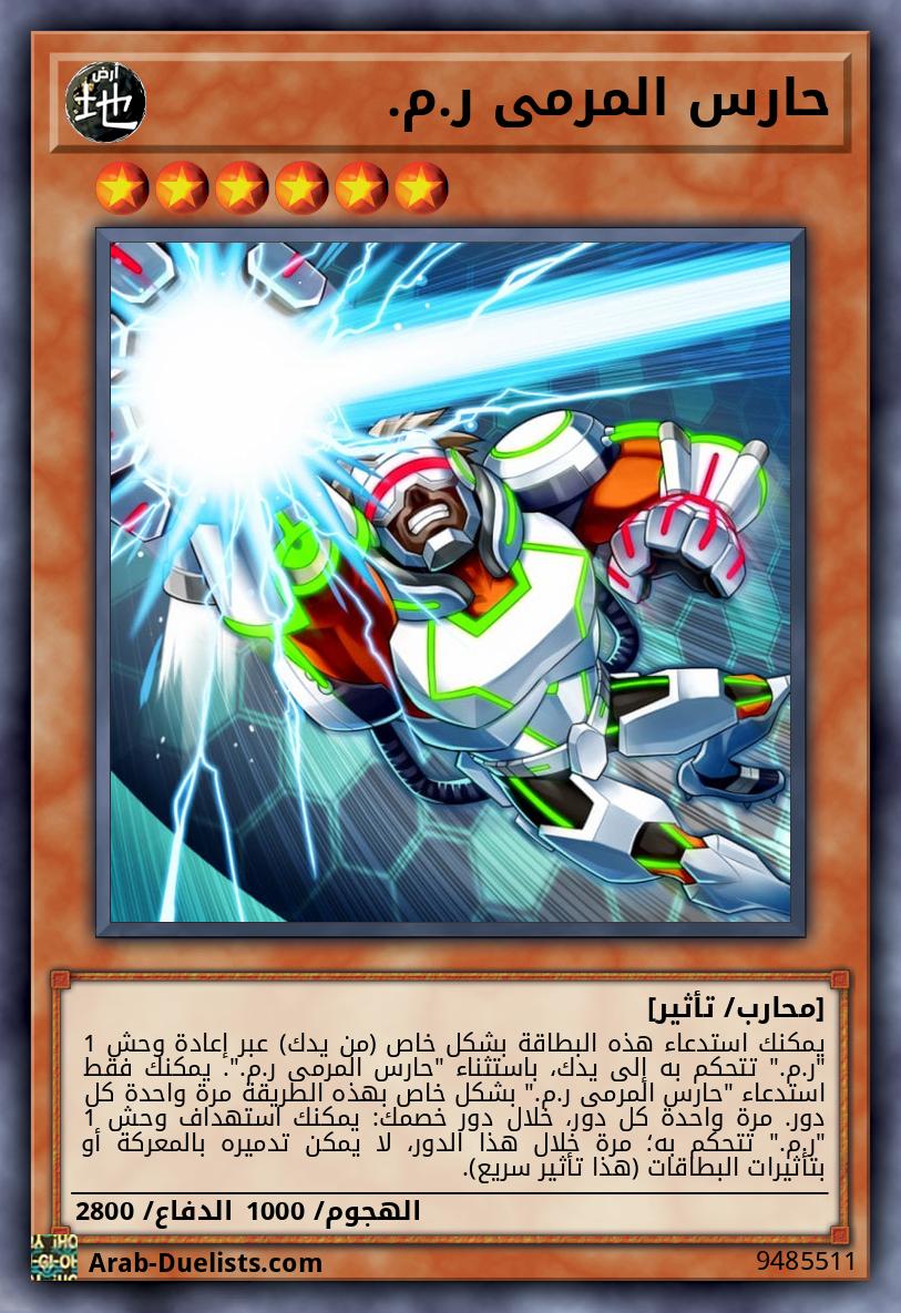 يمكنك استدعاء هذه البطاقة بشكل خاص (من يدك) عبر إعادة وحش 1 "ر.م." تتحكم به إلى يدك، باستثناء "حارس المرمى ر.م.". يمكنك فقط استدعاء "حارس المرمى ر.م." بشكل خاص بهذه الطريقة مرة واحدة كل دور. مرة واحدة كل دور، خلال دور خصمك: يمكنك استهداف وحش 1 "ر.م." تتحكم به؛ مرة خلال هذا الدور، لا يمكن تدميره بالمعركة أو بتأثيرات البطاقات (هذا تأثير سريع).