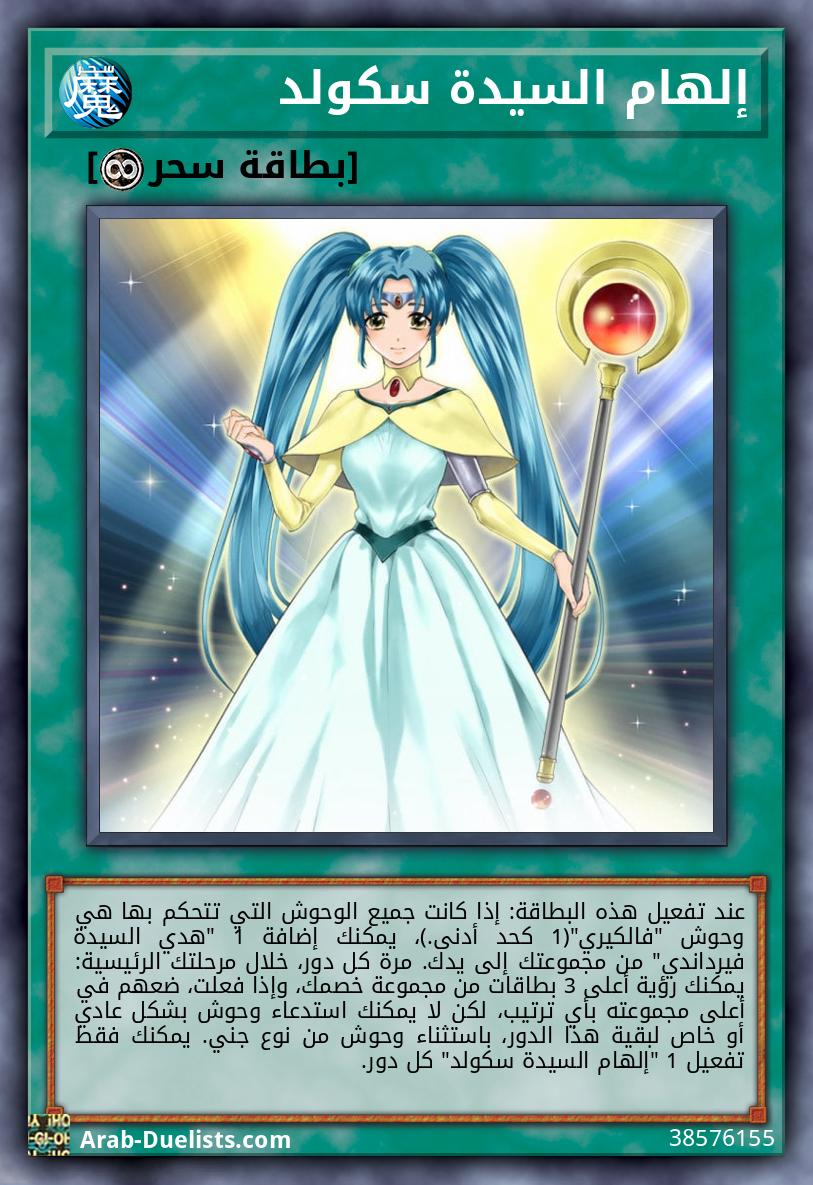 عند تفعيل هذه البطاقة: إذا كانت جميع الوحوش التي تتحكم بها هي وحوش "فالكيري"(1 كحد أدنى.)، يمكنك إضافة 1 "هدي السيدة فيرداندي" من مجموعتك إلى يدك. مرة كل دور، خلال مرحلتك الرئيسية: يمكنك رؤية أعلى 3 بطاقات من مجموعة خصمك، وإذا فعلت، ضعهم في أعلى مجموعته بأي ترتيب، لكن لا يمكنك استدعاء وحوش بشكل عادي أو خاص لبقية هذا الدور، باستثناء وحوش من نوع جني. يمكنك فقط تفعيل 1 "إلهام السيدة سكولد" كل دور.