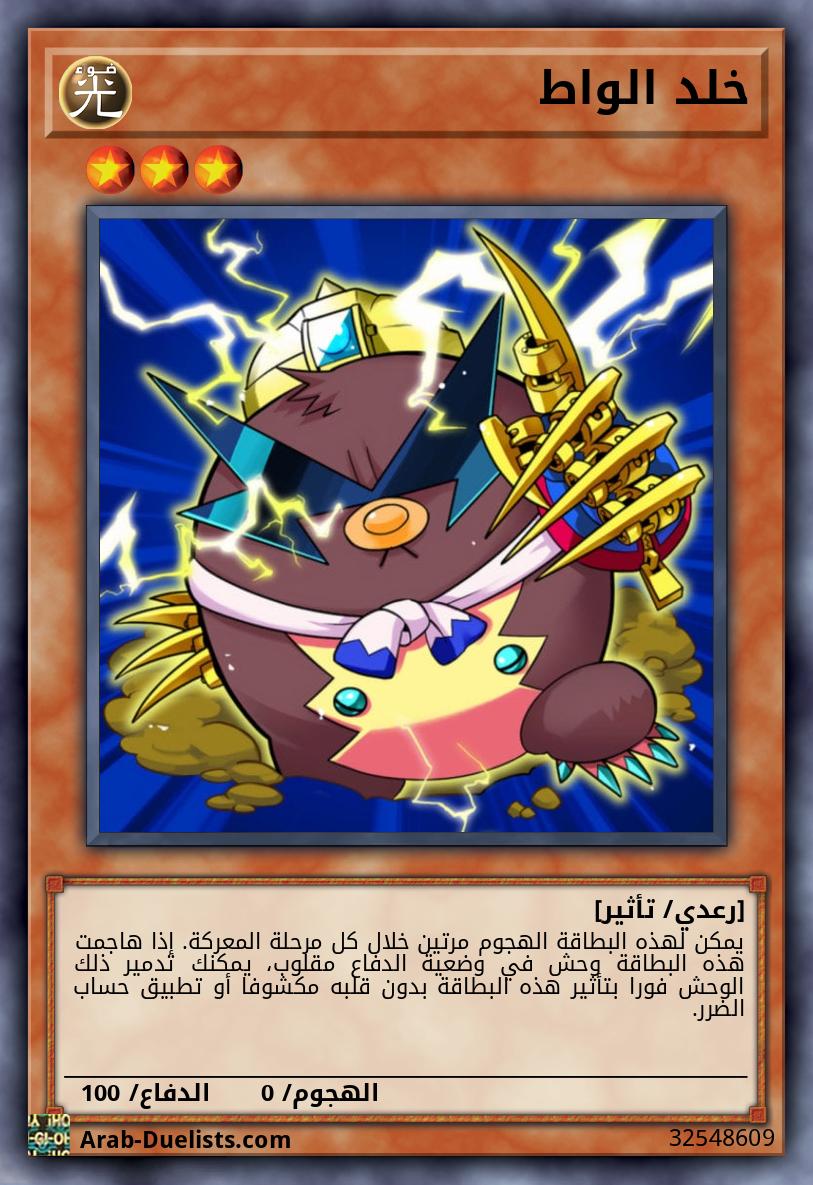 يمكن لهذه البطاقة مهاجمة خصمك مباشرة. عندما تُلحِق هذه البطاقة ضرر معركة بخصمك بهجوم مباشر: أضف وحش 1 "واط" من مجموعتك إلى يدك.