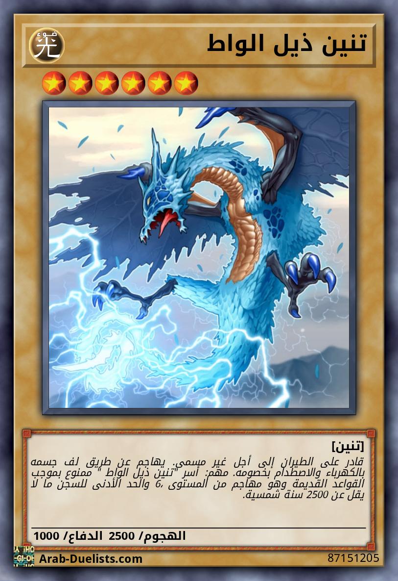 قادر على الطيران إلى أجل غير مسمى. يهاجم عن طريق لف جسمه بالكهرباء والاصطدام بخصومه. مهم: أسر "تنين ذيل الواط " ممنوع بموجب القواعد القديمة وهو مهاجم من المستوى 6، والحد الأدنى للسجن ما لا يقل عن 2500 سنة شمسية.