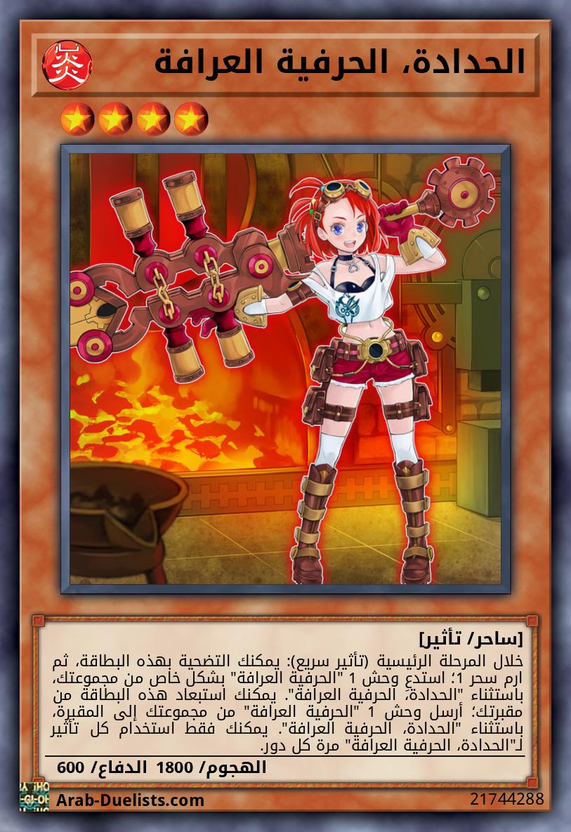 خلال المرحلة الرئيسية (تأثير سريع): يمكنك التضحية بهذه البطاقة، ثم ارم سحر 1؛ استدعِ وحش 1 "الحرفية العرافة" بشكل خاص من مجموعتك، باستثناء "الحدادة، الحرفية العرافة". يمكنك استبعاد هذه البطاقة من مقبرتك؛ أرسل وحش 1 "الحرفية العرافة" من مجموعتك إلى المقبرة، باستثناء "الحدادة، الحرفية العرافة". يمكنك فقط استخدام كل تأثير لـ"الحدادة، الحرفية العرافة" مرة كل دور.