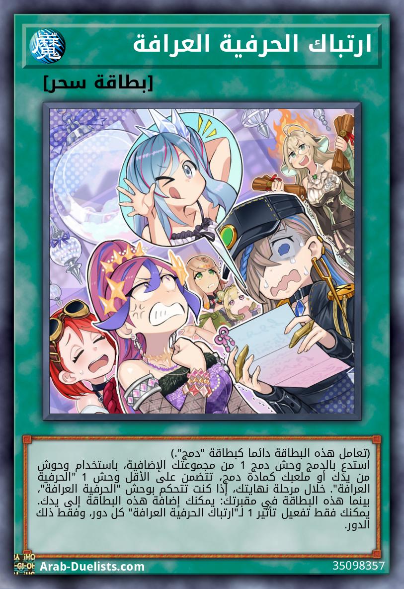 (تعامل هذه البطاقة دائما كبطاقة "دمج".) استدعِ بالدمج وحش دمج 1 من مجموعتك الإضافية، باستخدام وحوش من يدك أو ملعبك كمادة دمج، تتضمن على الأقل وحش 1 "الحرفية العرافة". خلال مرحلة نهايتك، إذا كنت تتحكم بوحش "الحرفية العرافة"، بينما هذه البطاقة في مقبرتك: يمكنك إضافة هذه البطاقة إلى يدك. يمكنك فقط تفعيل تأثير 1 لـ"ارتباك الحرفية العرافة" كل دور، وفقط ذلك الدور.