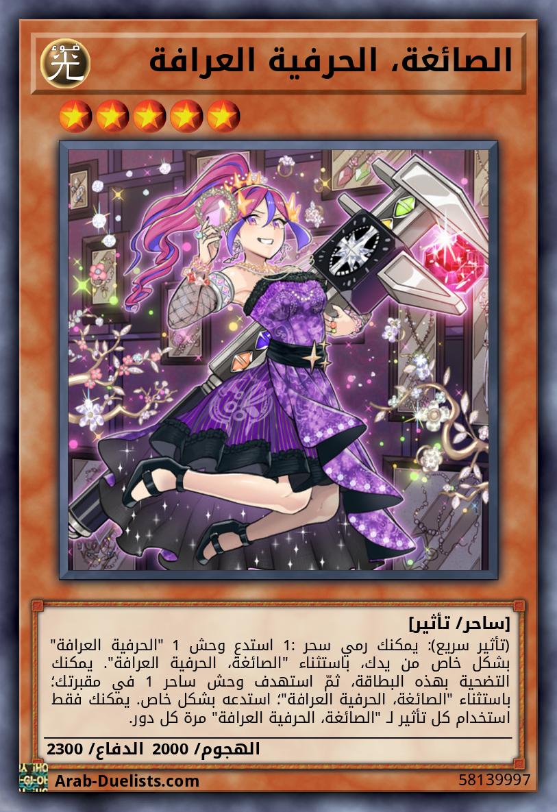 (تأثير سريع): يمكنك رمي سحر 1: استدعِ وحش 1 "الحرفية العرافة" بشكل خاص من يدك، باستثناء "الصائغة، الحرفية العرافة". يمكنك التضحية بهذه البطاقة، ثمّ استهدف وحش ساحر 1 في مقبرتك؛ باستثناء "الصائغة، الحرفية العرافة"؛ استدعه بشكل خاص. يمكنك فقط استخدام كل تأثير لـ "الصائغة، الحرفية العرافة" مرة كل دور.