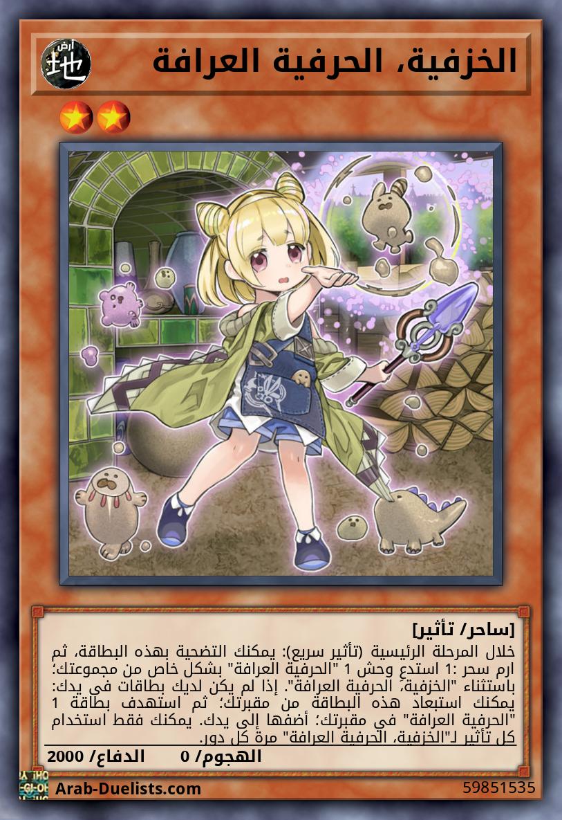 خلال المرحلة الرئيسية (تأثير سريع): يمكنك التضحية بهذه البطاقة، ثم ارم سحر 1: استدعِ وحش 1 "الحرفية العرافة" بشكل خاص من مجموعتك؛ باستثناء "الخزفية، الحرفية العرافة". إذا لم يكن لديك بطاقات فى يدك: يمكنك استبعاد هذه البطاقة من مقبرتك؛ ثم استهدف بطاقة 1 "الحرفية العرافة" في مقبرتك؛ أضفها إلى يدك. يمكنك فقط استخدام كل تأثير لـ"الخزفية، الحرفية العرافة" مرة كل دور.