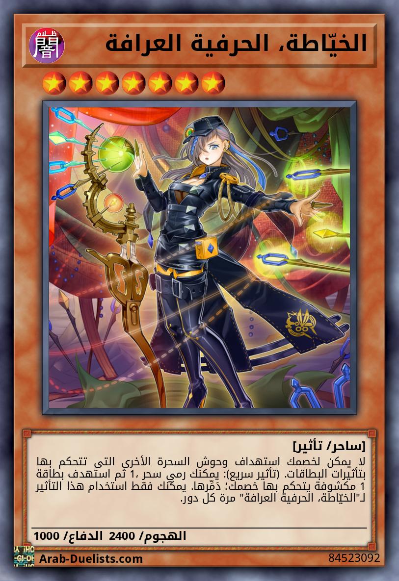 لا يمكن لخصمك استهداف وحوش السحرة الأخرى التى تتحكم بها بتأثيرات البطاقات. (تأثير سريع): يمكنك رمي سحر 1، ثم استهدف بطاقة 1 مكشوفة يتحكم بها خصمك؛ دَمِّرها. يمكنك فقط استخدام هذا التأثير لـ"الخيّاطة، الحرفية العرافة" مرة كل دور.