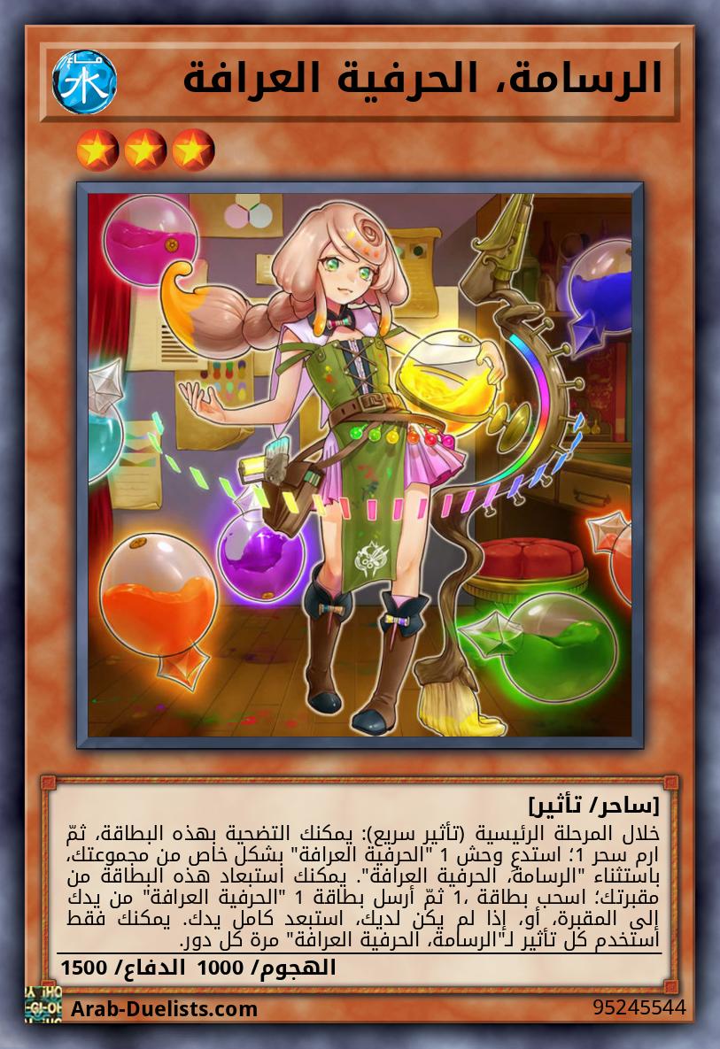 خلال المرحلة الرئيسية (تأثير سريع): يمكنك التضحية بهذه البطاقة، ثمّ ارم سحر 1؛ استدعِ وحش 1 "الحرفية العرافة" بشكل خاص من مجموعتك، باستثناء "الرسامة، الحرفية العرافة". يمكنك استبعاد هذه البطاقة من مقبرتك؛ اسحب بطاقة 1، ثمّ أرسل بطاقة 1 "الحرفية العرافة" من يدك إلى المقبرة، أو، إذا لم يكن لديك، استبعد كامل يدك. يمكنك فقط استخدم كل تأثير لـ"الرسامة، الحرفية العرافة" مرة كل دور.
