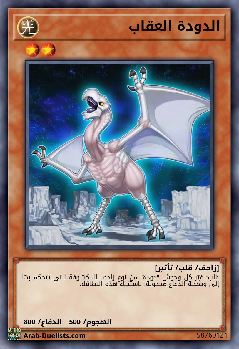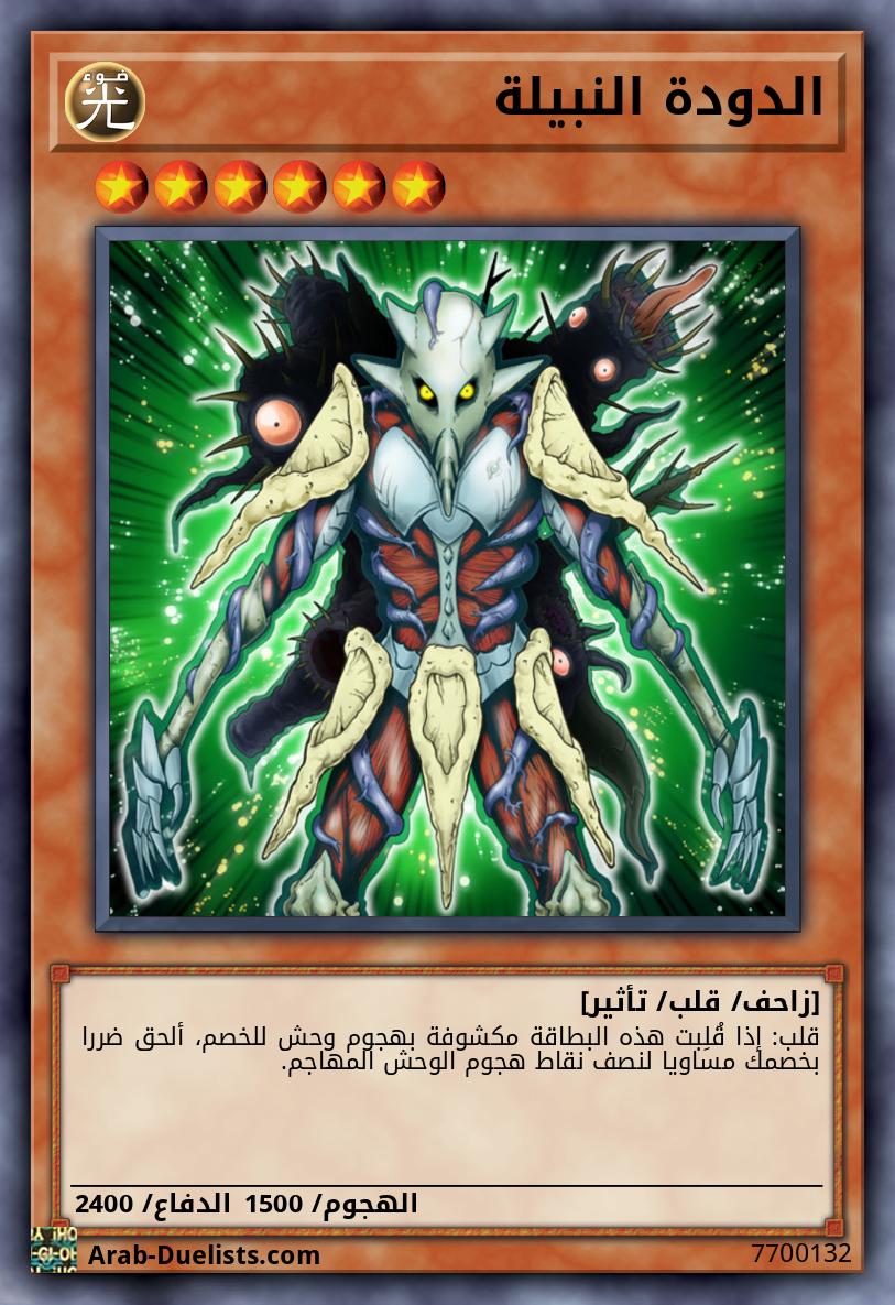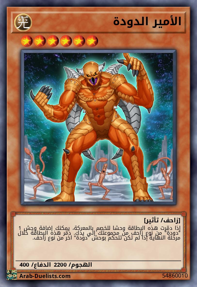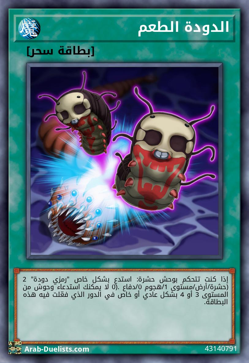إذا دمّرت هذه البطاقة وحشا للخصم بالمعركة، يمكنك إضافة وحش 1 "دودة" من نوع زاحف من مجموعتك إلى يدك. دمّر هذه البطاقة خلال مرحلة النهاية إذا لم تكن تتحكم بوحش "دودة" اخر من نوع زاحف.