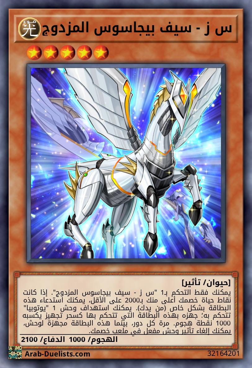 يمكنك فقط التحكم بـ1 "س ز - سيف بيجاسوس المزدوج". إذا كانت نقاط حياة خصمك أعلى منك بـ2000 على الأقل، يمكنك استدعاء هذه البطاقة بشكل خاص (من يدك). يمكنك استهداف وحش 1 "يوتوبيا" تتحكم به؛ جهزه بهذه البطاقة التي تتحكم بها كسحر تجهيز يكسبه 1000 نقطة هجوم. مرة كل دور، بينما هذه البطاقة مجهزة لوحش، يمكنك إلغاء تأثير وحش مفعل في ملعب خصمك.