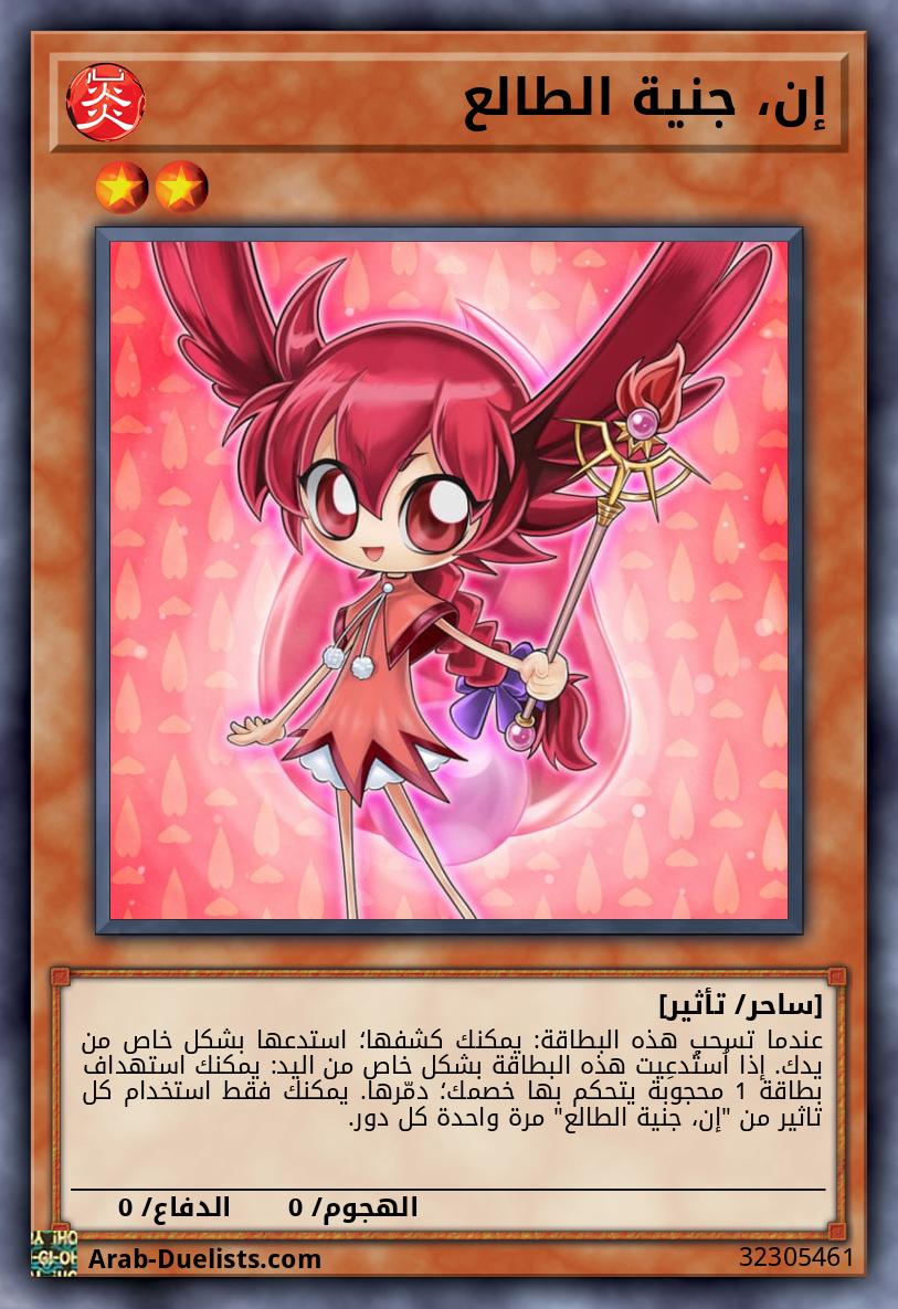 عندما تسحب هذه البطاقة: يمكنك كشفها؛ استدعها بشكل خاص من يدك. إذا اُستُدعِيت هذه البطاقة بشكل خاص من اليد: يمكنك استهداف بطاقة 1 محجوبة يتحكم بها خصمك؛ دمّرها. يمكنك فقط استخدام كل تاثير من "إن، جنية الطالع" مرة واحدة كل دور.