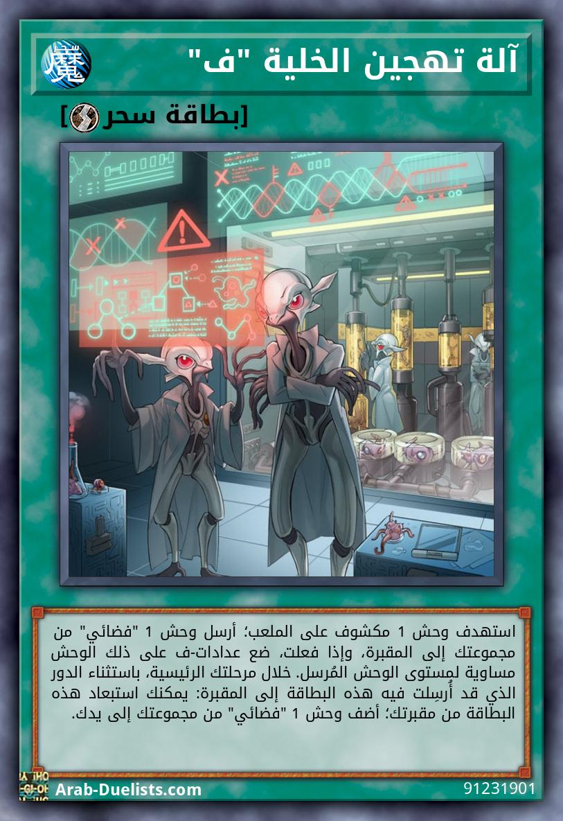 استهدف وحش 1 مكشوف على الملعب؛ أرسل وحش 1 "فضائي" من مجموعتك إلى المقبرة، وإذا فعلت، ضع عدادات-ف على ذلك الوحش مساوية لمستوى الوحش المُرسل. خلال مرحلتك الرئيسية، باستثناء الدور الذي قد أُرسِلت فيه هذه البطاقة إلى المقبرة: يمكنك استبعاد هذه البطاقة من مقبرتك؛ أضف وحش 1 "فضائي" من مجموعتك إلى يدك.