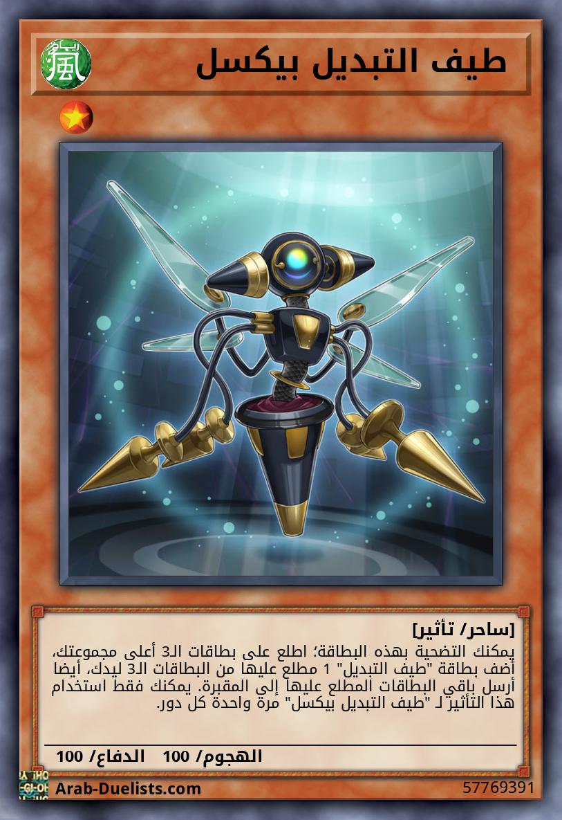 يمكنك التضحية بهذه البطاقة؛ اطلع على بطاقات الـ3 أعلى مجموعتك، أضف بطاقة "طيف التبديل" 1 مطلع عليها من البطاقات الـ3 ليدك، أيضا أرسل باقي البطاقات المطلع عليها إلى المقبرة. يمكنك فقط استخدام هذا التأثير لـ "طيف التبديل بيكسل" مرة واحدة كل دور.