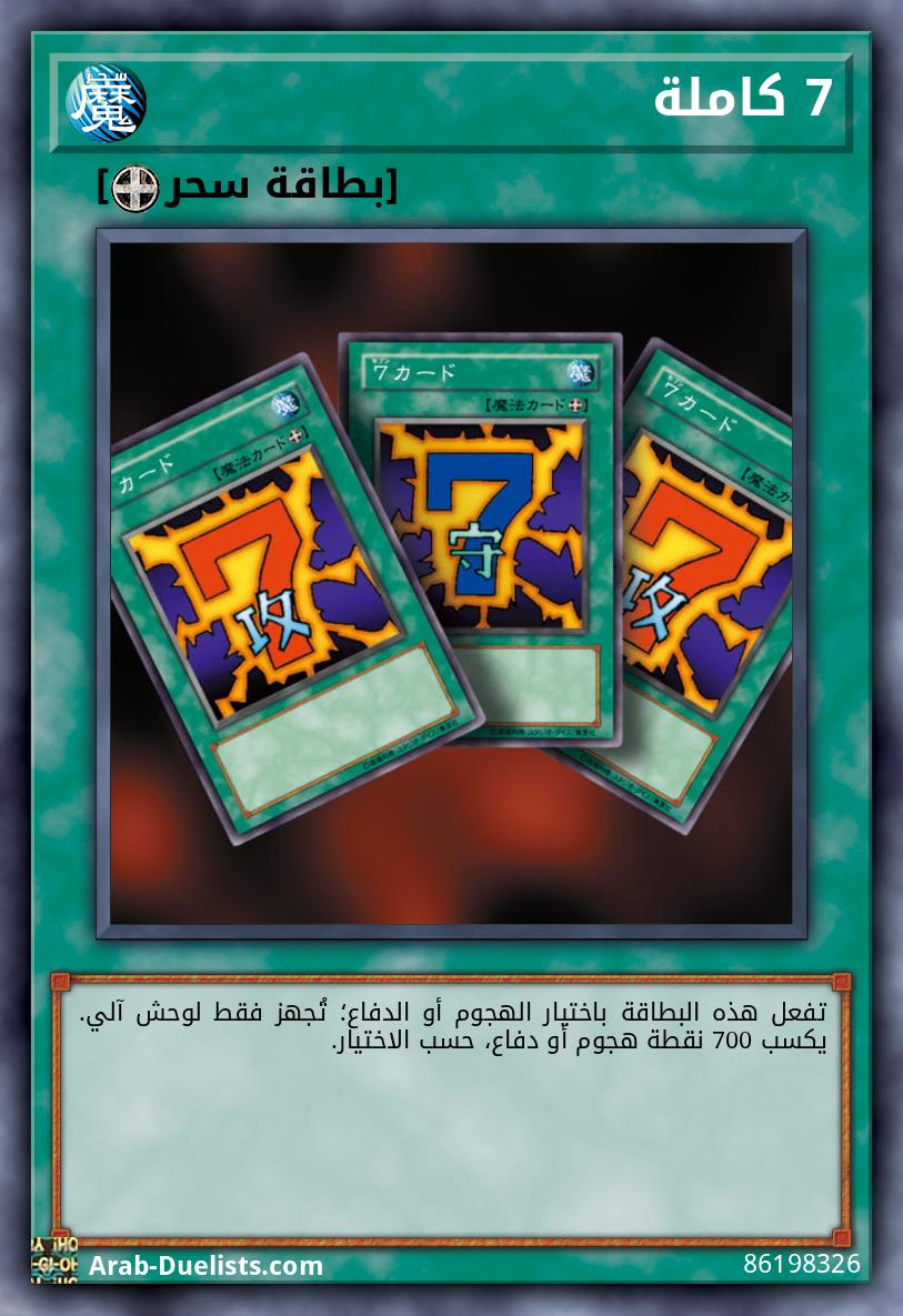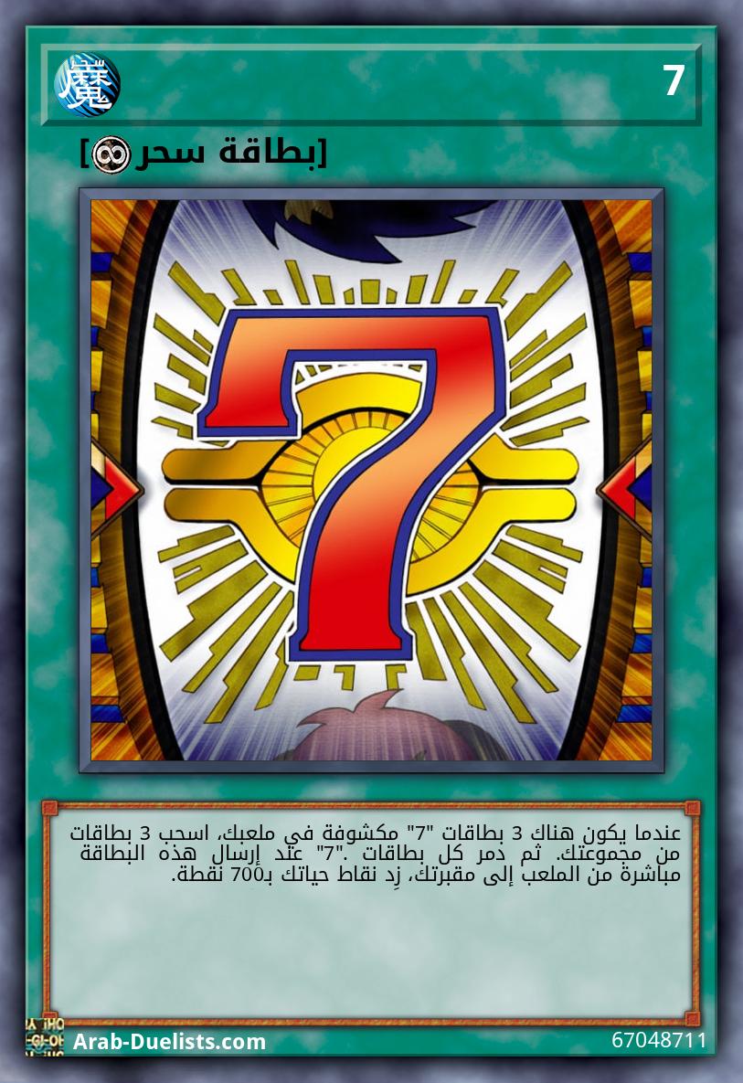 عندما يكون هناك 3 بطاقات "7" مكشوفة في ملعبك، اسحب 3 بطاقات من مجموعتك. ثم دمر كل بطاقات "7". عند إرسال هذه البطاقة مباشرة من الملعب إلى مقبرتك، زِد نقاط حياتك بـ700 نقطة.