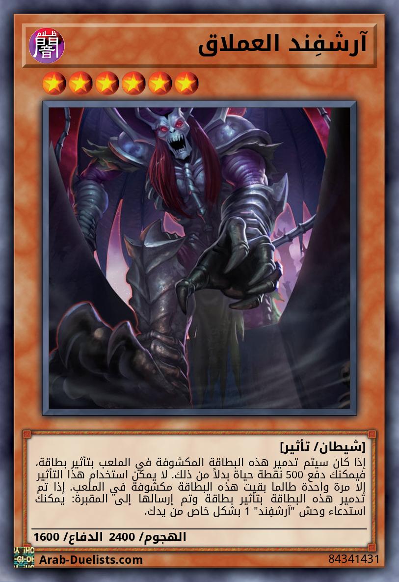 يكسب 400 نقطة هجوم لكل فخ عادي باسم مختلف في مقبرتك. الوحوش التي يتحكم بها خصمك لا يمكنها استهداف الوحوش من نوع شيطان للهجوم، باستثناء "آرشفِند المتاهات". يمكنك فقط استخدام كل من التأثيرات التالية لـ "آرشفِند المتاهات" مرة كل دور. إذا تم تفعيل بطاقة فخ (إلا خلال خطوة الضرر): يمكنك استدعاء هذه البطاقة بشكل خاص من يدك. إذا تم استدعاء هذه البطاقة بشكل خاص: يمكنك وضع فخ عادي 1 محجوبًا من مجموعتك والذي لا يمكن تفعيل تأثيره إلا عند الإعلان عن هجوم.