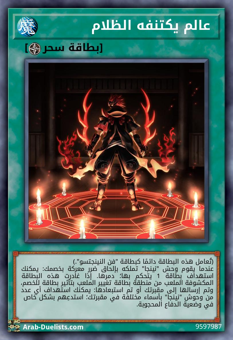 (تُعامل هذه البطاقة دائمًا كبطاقة "فن النينجتسو".) عندما يقوم وحش "نينجا" تملكه بإلحاق ضرر معركة بخصمك: يمكنك استهداف بطاقة 1 يتحكم بها؛ دمرها. إذا غادرت هذه البطاقة المكشوفة الملعب من منطقة بطاقة تغيير الملعب بتأثير بطاقة للخصم، وتم إرسالها إلى مقبرتك أو تم استبعادها: يمكنك استهداف أي عدد من وحوش "نينجا" بأسماء مختلفة في مقبرتك؛ استدعِهم بشكل خاص في وضعية الدفاع المحجوبة.