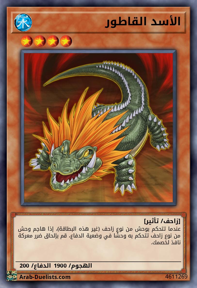 عندما تتحكم بوحش من نوع زاحف (غير هذه البطاقة)، إذا هاجم وحش من نوع زاحف تتحكم به وحشًا في وضعية الدفاع، قم بإلحاق ضرر معركة نافذ لخصمك.