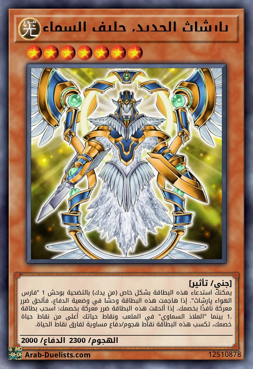 يمكنك استدعاء هذه البطاقة بشكل خاص (من يدك) بالتضحية بوحش 1 "فارس الهواء پارشاث". إذا هاجمت هذه البطاقة وحشًا في وضعية الدفاع، فألحق ضرر معركة نافذًا بخصمك. إذا ألحقت هذه البطاقة ضرر معركة بخصمك: اسحب بطاقة 1. بينما "الملاذ السماوي" في الملعب ونقاط حياتك أعلى من نقاط حياة خصمك، تكسب هذه البطاقة نقاط هجوم/دفاع مساوية لفارق نقاط الحياة.