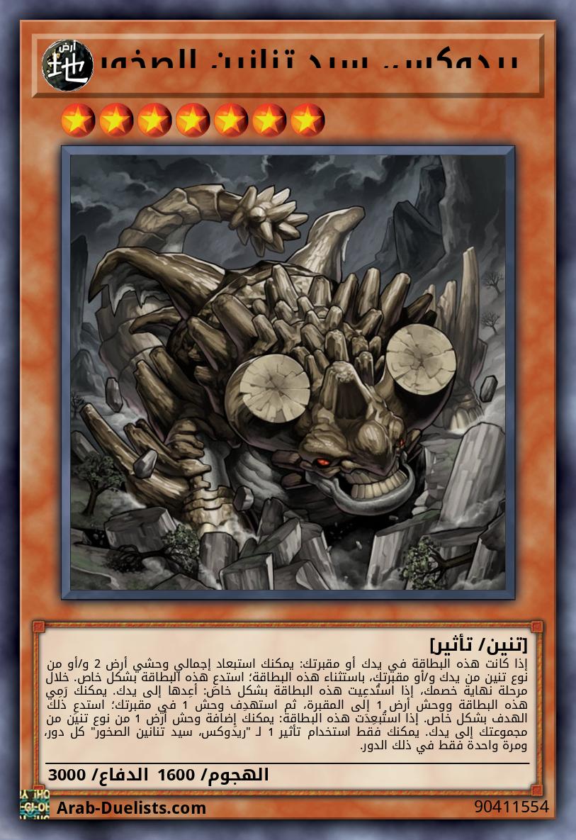 إذا كانت هذه البطاقة في يدك أو مقبرتك: يمكنك استبعاد إجمالي وحشي أرض 2 و/أو من نوع تنين من يدك و/أو مقبرتك، باستثناء هذه البطاقة؛ استدعِ هذه البطاقة بشكل خاص. خلال مرحلة نهاية خصمك، إذا استُدعِيت هذه البطاقة بشكل خاص: أعِدها إلى يدك. يمكنك رَمِي هذه البطاقة ووحش أرض 1 إلى المقبرة، ثم استهدِف وحش 1 في مقبرتك؛ استدعِ ذلك الهدف بشكل خاص. إذا استُبعِدَت هذه البطاقة: يمكنك إِضافة وحش أرض 1 من نوع تنين من مجموعتك إلى يدك. يمكنك فقط استخدام تأثير 1 لـ "ريدوكس، سيد تنانين الصخور" كل دور، ومرة واحدة فقط في ذلك الدور.