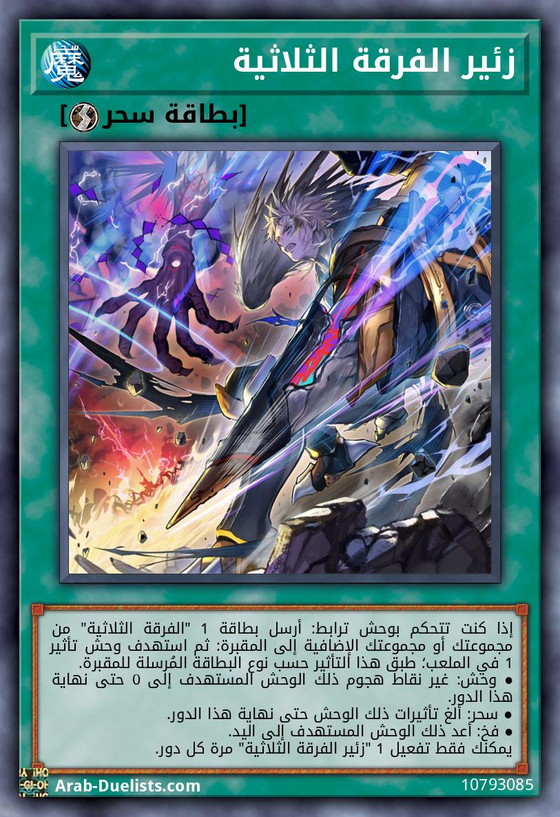 إذا كنت تتحكم بوحش ترابط: أرسل بطاقة 1 "الفرقة الثلاثية" من مجموعتك أو مجموعتك الإضافية إلى المقبرة: ثم استهدف وحش تأثير 1 في الملعب؛ طبق هذا التأثير حسب نوع البطاقة المُرسلة للمقبرة. |