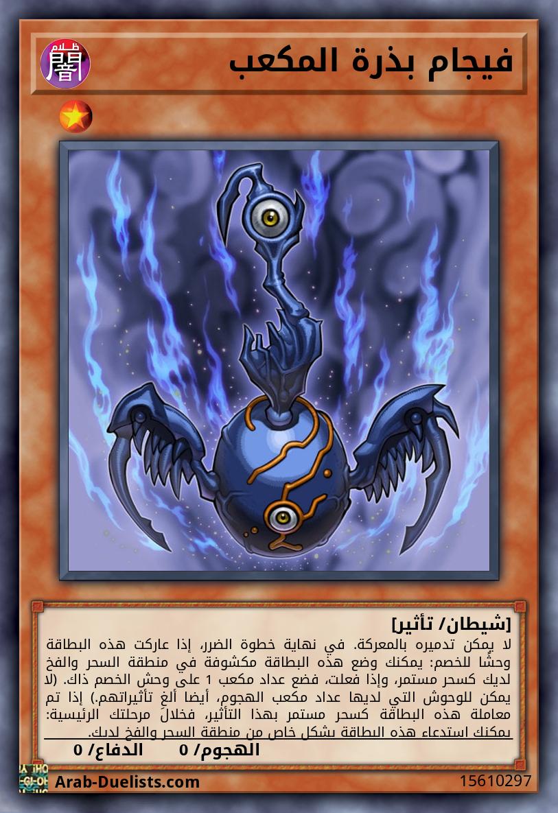 لا يمكن تدميره بالمعركة. في نهاية خطوة الضرر، إذا عاركت هذه البطاقة وحشًا للخصم: يمكنك وضع هذه البطاقة مكشوفة في منطقة السحر والفخ لديك كسحر مستمر، وإذا فعلت، فضع عداد مكعب 1 على وحش الخصم ذاك. (لا يمكن للوحوش التي لديها عداد مكعب الهجوم، أيضا ألغِ تأثيراتهم.) إذا تم معاملة هذه البطاقة كسحر مستمر بهذا التأثير، فخلال مرحلتك الرئيسية: يمكنك استدعاء هذه البطاقة بشكل خاص من منطقة السحر والفخ لديك. |