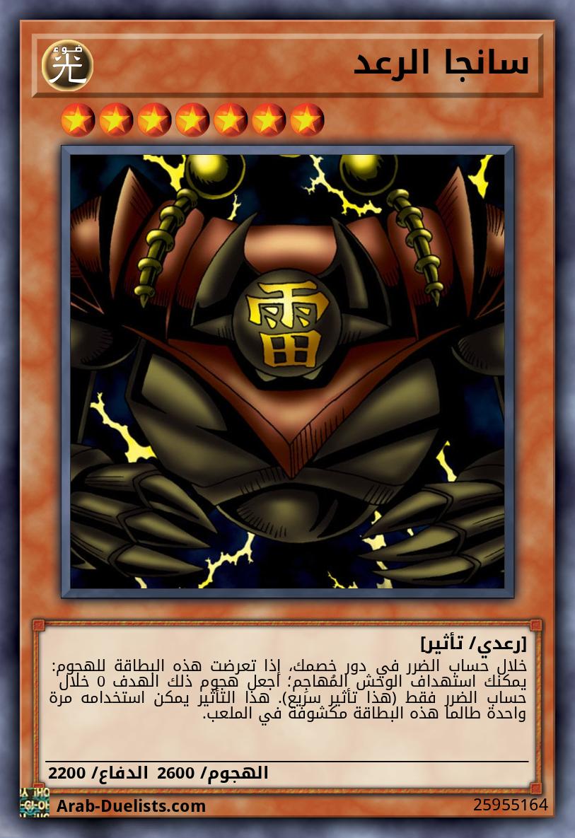 خلال حساب الضرر في دور خصمك، إذا تعرضت هذه البطاقة للهجوم: يمكنك استهداف الوحش المُهاجِم؛ اجعل هجوم ذلك الهدف 0 خلال حساب الضرر فقط (هذا تأثير سريع). هذا التأثير يمكن استخدامه مرة واحدة طالما هذه البطاقة مكشوفة في الملعب. |