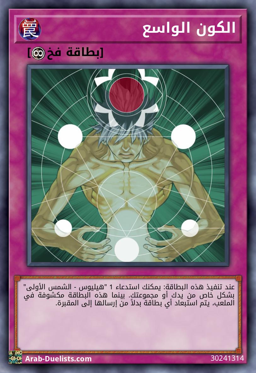 عند تنفيذ هذه البطاقة: يمكنك استدعاء 1 "هيليوس - الشمس الأولى" بشكل خاص من يدك أو مجموعتك. بينما هذه البطاقة مكشوفة في الملعب، يتم استبعاد أي بطاقة بدلاً من إرسالها إلى المقبرة. |