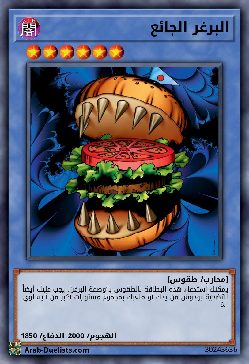 يمكنك استدعاء هذه البطاقة بالطقوس بـ "وصفة البرغر". يجب عليك أيضاً التضحية بوحوش من يدك أو ملعبك بمجموع مستويات أكبر من أ يساوي 6. |
