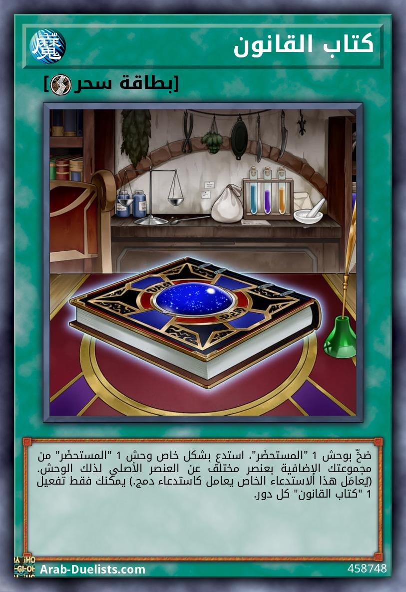ضحِّ بوحش 1 "المستحضَر" ، استدعِ بشكل خاص وحش 1 "المستحضَر" من مجموعتك الإضافية بعنصر مختلف عن العنصر الأصلي لذلك الوحش. (يُعامَل هذا الاستدعاء الخاص يعامل كاستدعاء دمج.) يمكنك فقط تفعيل 1 "كتاب القانون" كل دور. |