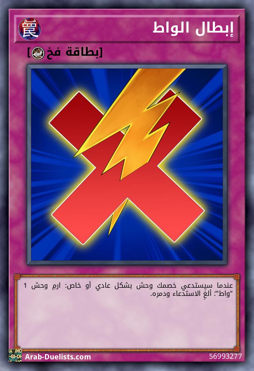 عندما سيستدعي خصمك وحش بشكل عادي أو خاص: ارمِ وحش 1 "واط"؛ ألغِ الاستدعاء ودمره. |