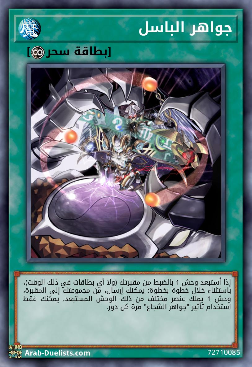 إذا اُستبعد وحش 1 بالضبط من مقبرتك (ولا أي بطاقات في ذلك الوقت)، باستثناء خلال خطوة بخطوة: يمكنك إرسال، من مجموعتك إلى المقبرة، وحش 1 يملك عنصر مختلف من ذلك الوحش المستبعد. يمكنك فقط استخدام تأثير "جواهر الشجاع" مرة كل دور. |