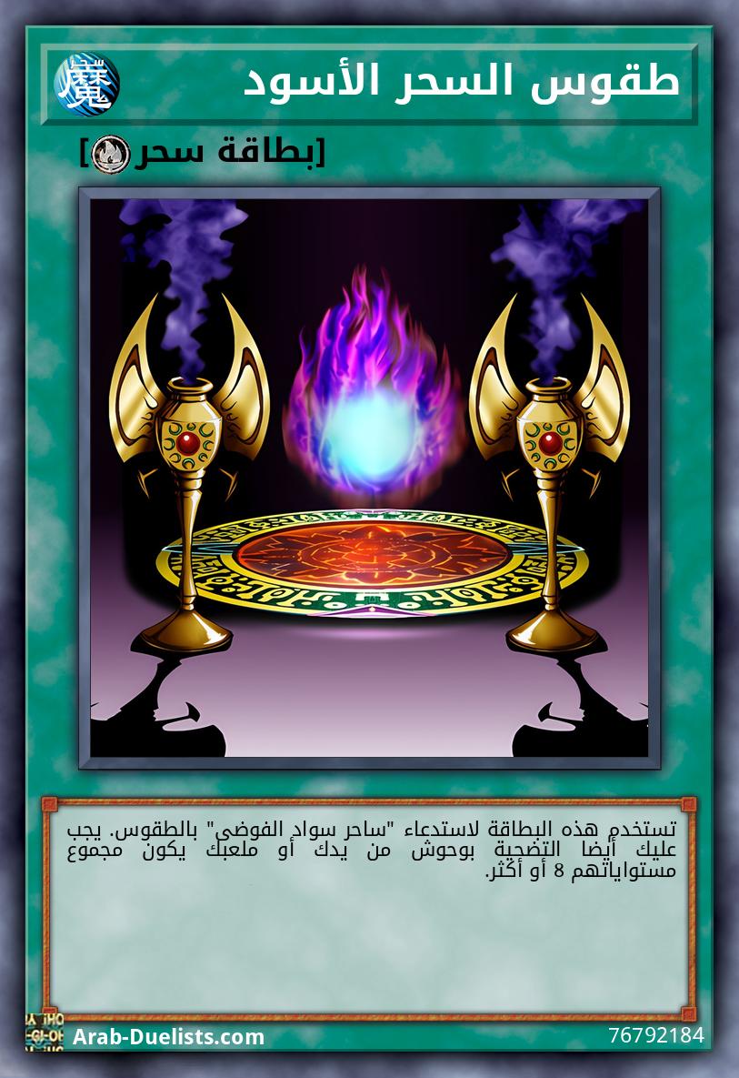 تستخدم هذه البطاقة لاستدعاء "ساحر سواد الفوضى" بالطقوس. يجب عليك أيضا التضحية بوحوش من يدك أو ملعبك يكون مجموع مستواياتهم 8 أو أكثر. |