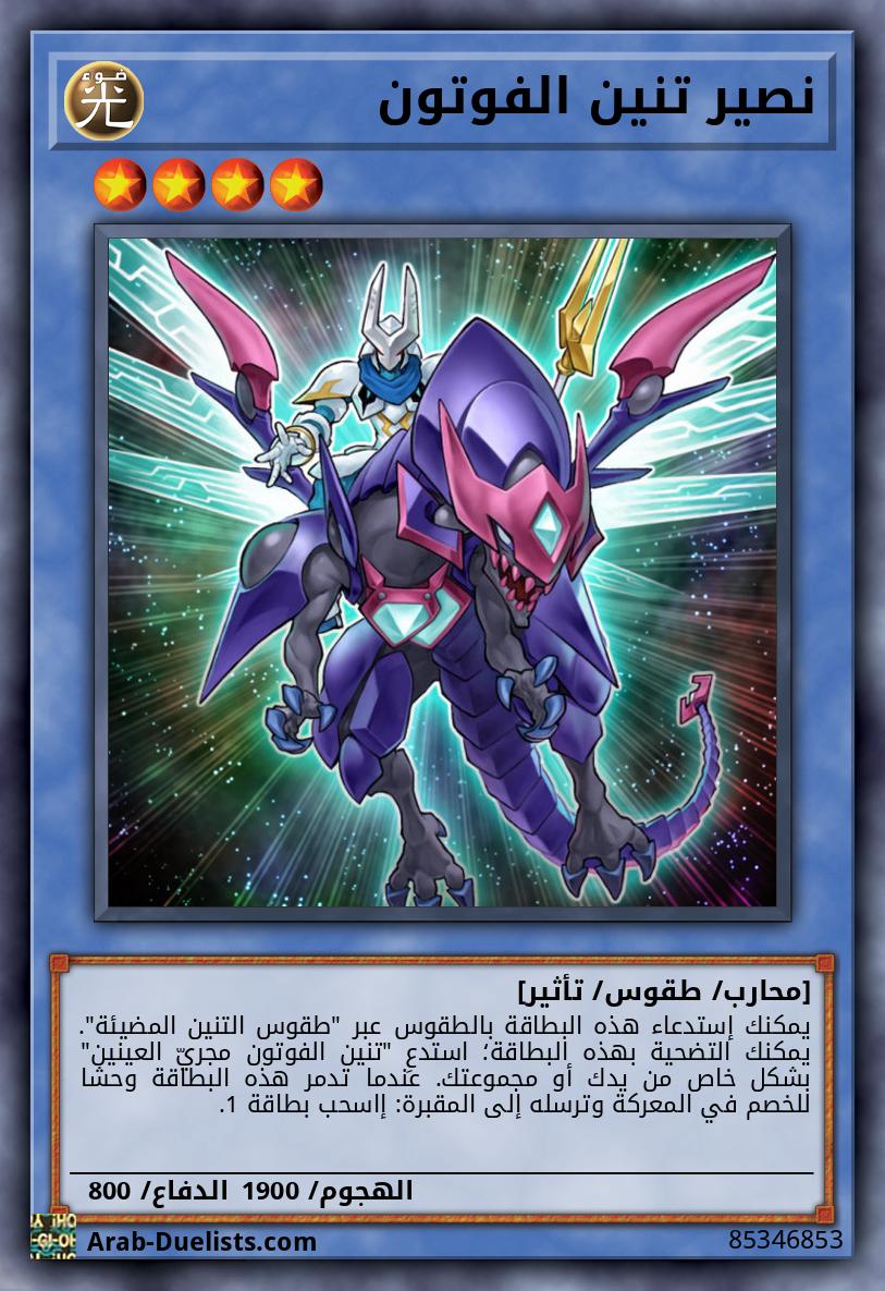 يمكنك إستدعاء هذه البطاقة بالطقوس عبر "طقوس التنين المضيئة". يمكنك التضحية بهذه البطاقة؛ استدعِ "تنين الفوتون مجريّ العينين" بشكل خاص من يدك أو مجموعتك. عندما تدمر هذه البطاقة وحشا للخصم في المعركة وترسله إلى المقبرة: إاسحب بطاقة 1. |